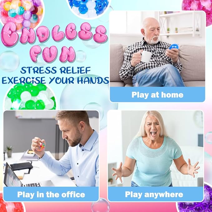 - 【Stress Relief】Whether at home or in the office, squishy balls will bring joy and fun to you. You can squeeze, stretch and press these balls to crush your anxiety away.