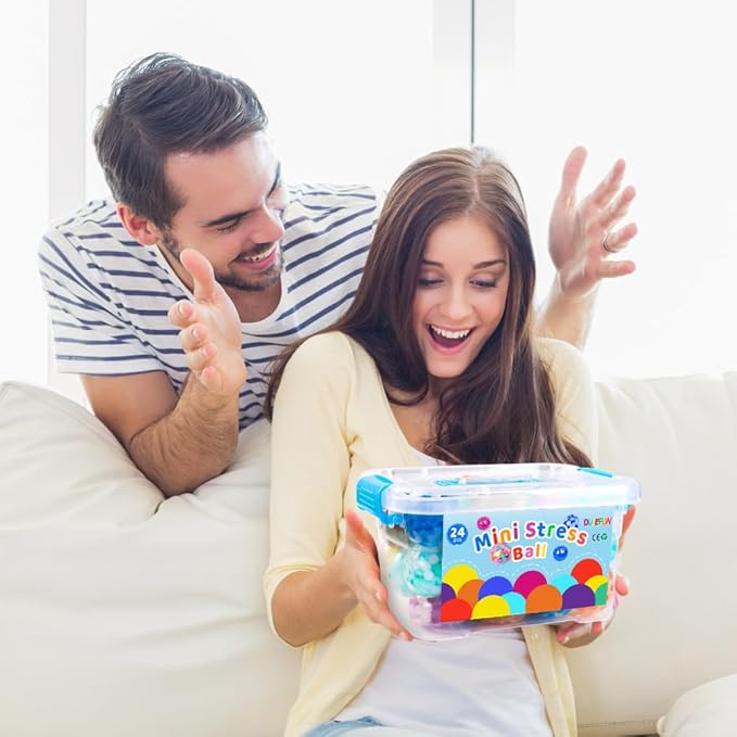 - 【Value Package】You will get 24pcs colorful stress balls, perfect for adults to relieve stress and increase focus. Package also comes with a plastic box, all stress balls have been packed in it.