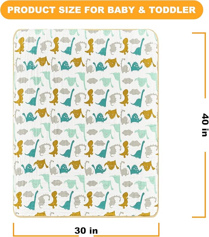 ZPECC Muslin Baby Blanket Thicker, 30x40 Organic Cotton Newborn Receiving Quilt Hypoallergenic for Baby Essentials Swaddle Crib Stroller, Dinosaur