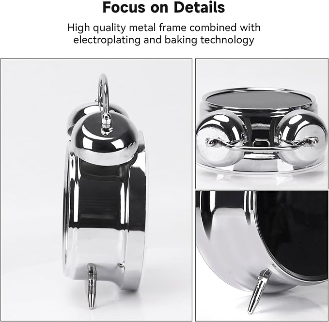 - 【Super loud wake-up alarm clock】This alarm clock is specially designed for heavy sleepers, children and adolescents with difficulty waking up. The classic metal double bell and ringing design, with a crisp mechanical ringing sound of over 70 decibels, is enough to wake up anyone who is asleep.