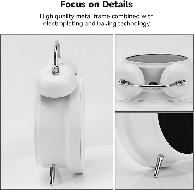 - 【Super loud wake-up alarm clock】This alarm clock is specially designed for heavy sleepers, children and adolescents with difficulty waking up. The classic metal double bell and ringing design, with a crisp mechanical ringing sound of over 70 decibels, is enough to wake up anyone who is asleep.