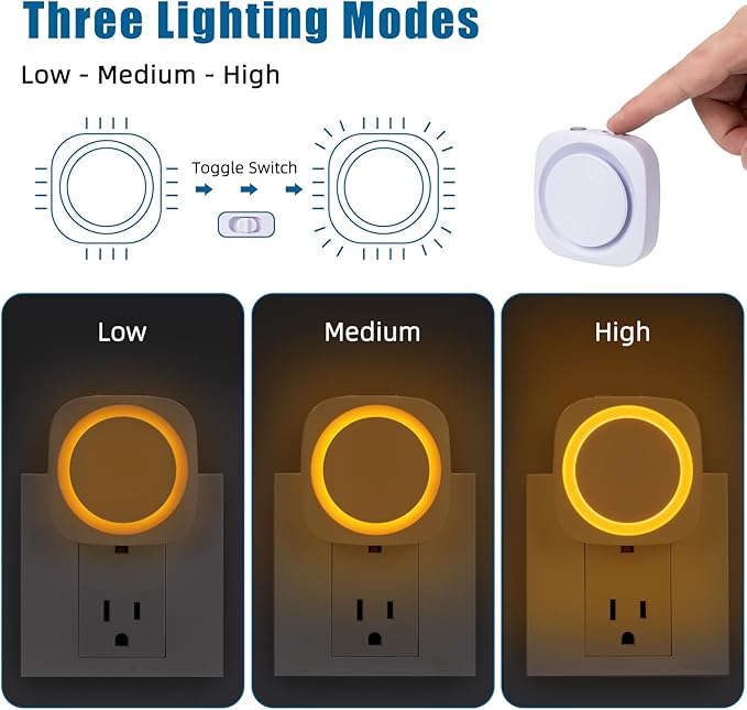 - 【Automatic Sensor】Equipped with a smart sensor, the night light automatically turns on when the surrounding environment darkens, offering convenient illumination for late-night trips to the bathroom or hallway.
