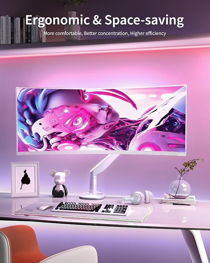 - 【Sleek, Modern Aesthetic】Stylish and elegant appearance, combined with the integrated cable management design, this white monitor mount can easily match multiple furniture styles, full of artistic beauty and comfort.