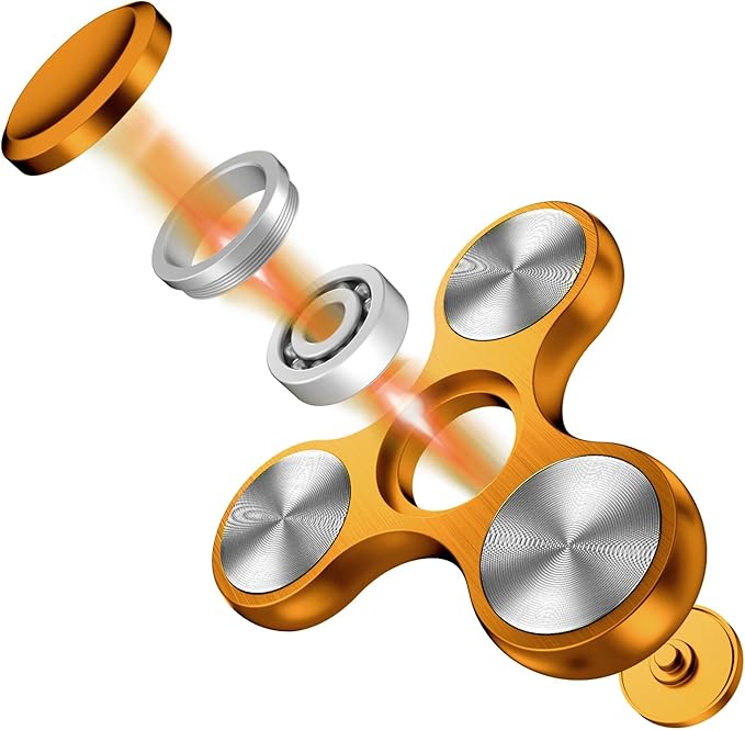 Fidget Spinners Toy, Metal Stainless Steel Bearing High Speed 4-8 Min Spins, EDC ADHD Stress Anxiety Relieves Reducer Fidgets Finger Toys, Spinner Toys for Kids and Adults (Orange)