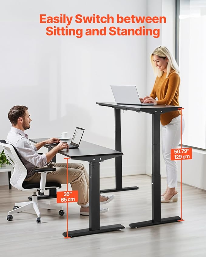 VEVOR Dual Motor 3 Stage Standing Desk Frame, Adjustable 26"-50.8" Height & 43.3"-70.1" Length Electric Stand Up Computer Desk Legs, Ergonomic Workstation Base for Home Office(Black Frame Only)