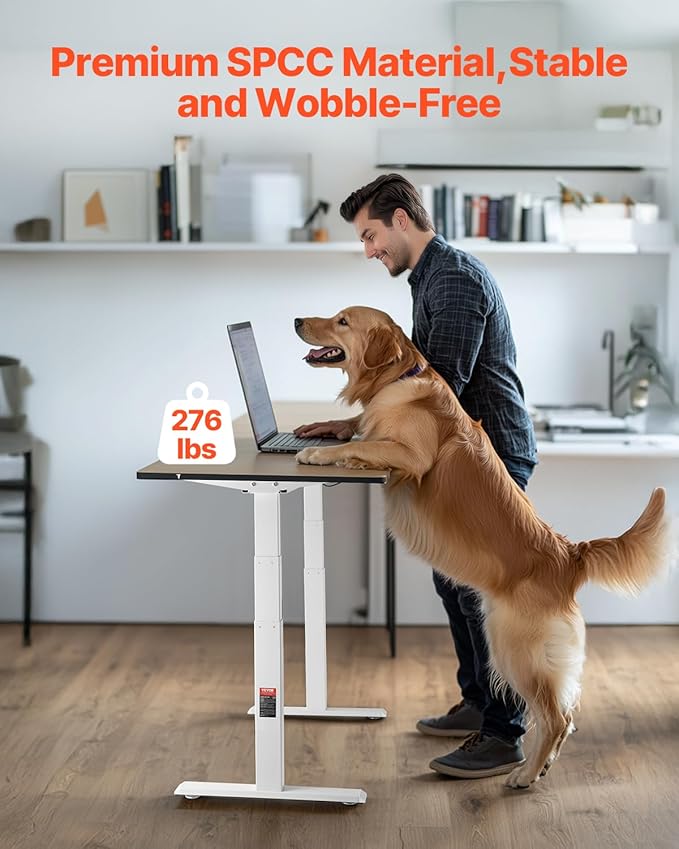 - Sturdy and Stable: With a robust weight capacity of 125kg / 276 lbs, crafted from premium SPCC material, this desk stands strong, durable, and operates quietly. Its legs are reinforced by 20% for a comfortable and efficient workspace.