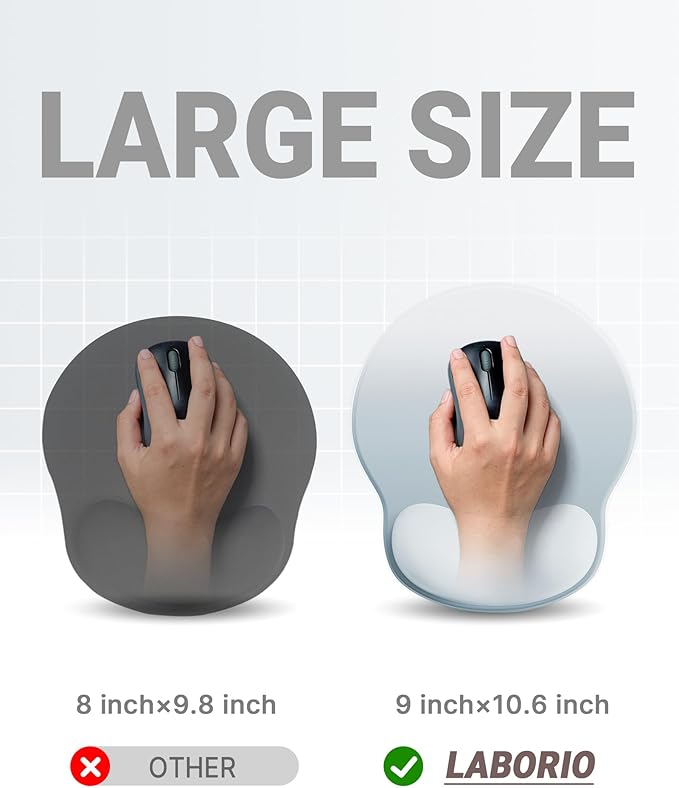 - 【Large Mouse Pad Size】Large mousepad with optimal shape and bigger size (10.6" x 9" x 1.18"). You can move the mouse around more easily and freely. Good for working, gaming, or as gifts to your friends or family. (Note: Please make sure the desk has enough space for mouse pad with wrist rest.)