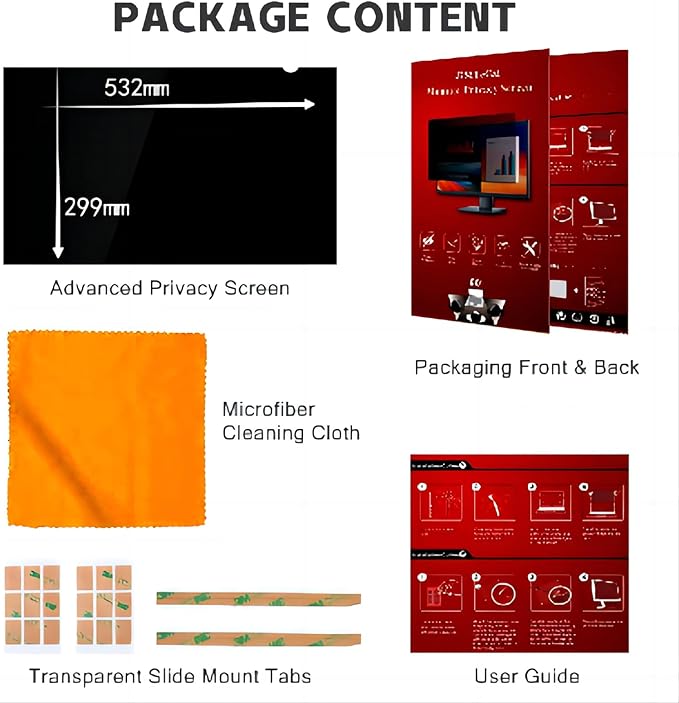 - Privacy Filter Dimensions - Width: (532 mm), Height: (299 mm), Diagonal: 24" (60.96 mm) - Blackout Privacy Screen Filter is designed to be compatible with HP, Dell, Samsung, Lenovo, LG, Acer, Asus, and other display brands. Please verify the width and height measurements of your computer screen before ordering. It is not recommended to choose only based on the diagonal size of the computer screen.