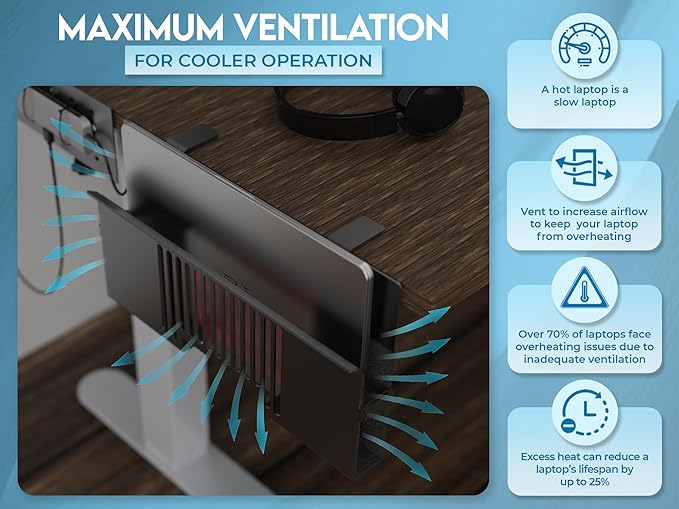 - Dock and Declutter! Say goodbye to desk clutter. Our vertical storage solution keeps your laptop snug and your workspace tidy.