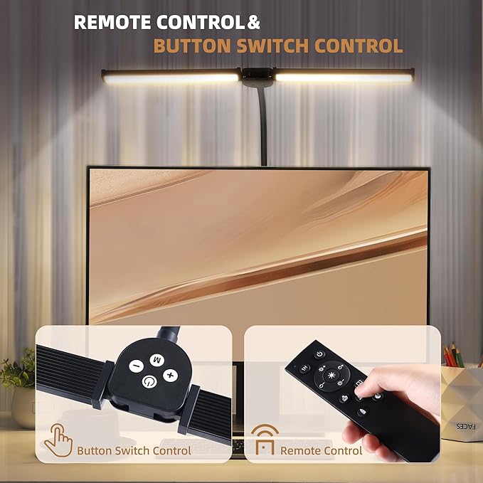 - 【Remote Control & Button Control】 Two control modes make it easier to use our desk lamp. You can use the remote control (within a range of 32.8 ft/10 m) with a 1-hour timer function. The different light settings and the timer feature make it perfect for home office! Alternatively, you can adjust the lighting mode using the buttons on the lamp head.