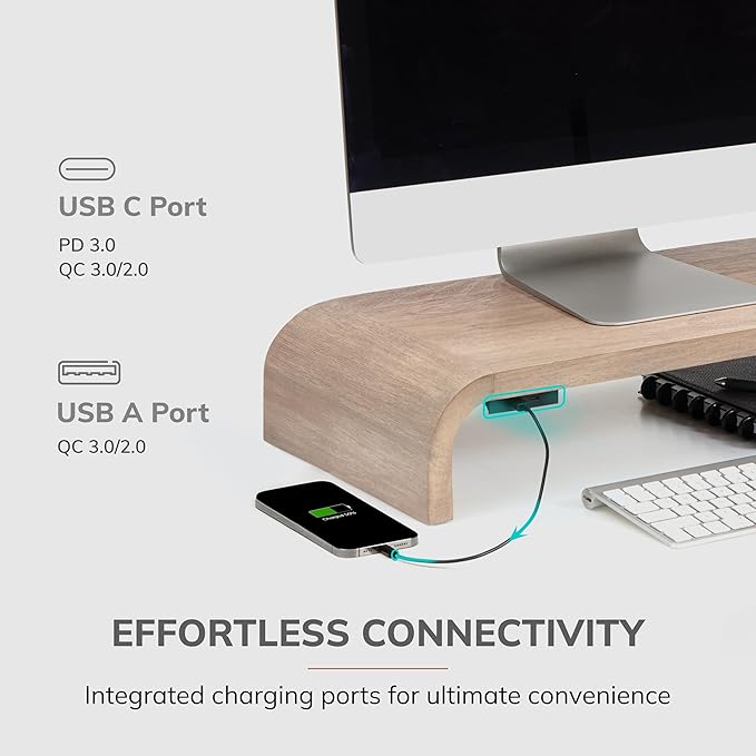- COMPLEMENTS EVERY MONITOR DESK DECOR: These solid wooden monitor stands seamlessly integrate with any desk decor. They enhance the overall aesthetics of your workspace - be it modern, minimal or classic.