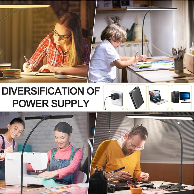 - 【Spacious and Illuminating】- LITREN desk lamps for home office, with its 16.34 inch/40 cm widened design, provides an ample amount of brightness, efficiently conserving your energy while fully illuminating your desk. Its light is exceptionally uniform, which can prevent blue light from harming your eyes, enhancing your work efficiency. Ideal for multi-monitor workstations, home, office, study, architects, drawing, sewing, crafting, painting, reading, gaming, pianos and nail