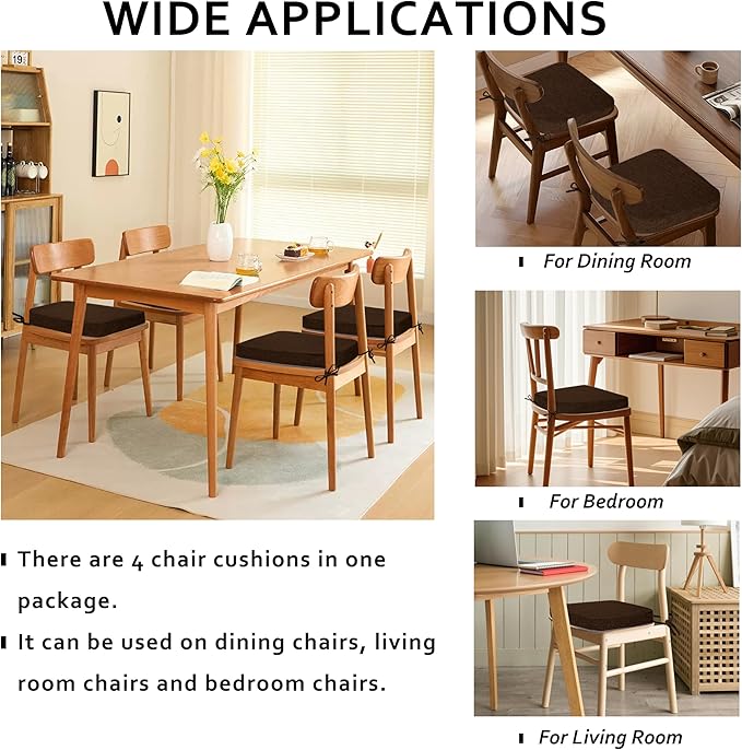 - [Double Anti-Slip]-The non-slip feature of our chair cushions is simply impeccable, with extended straps and anti-slip silicone particles on the bottom. Even if you twist and turn on it, it won't slide sideways. Wooden chairs or plastic chairs, maybe they do have a slippery surface, but it's hard to beat our products! Sit firmly on it and experience the peace of mind and safety our products provide.