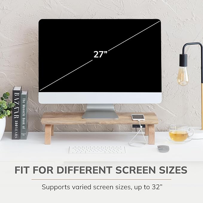 - Ergonomic Computer Riser: Prioritize comfort with this thoughtfully designed computer riser. As one of the best computer risers for desk monitors, the monitor stand wood construction offers an ideal viewing angle for maximum productivity.