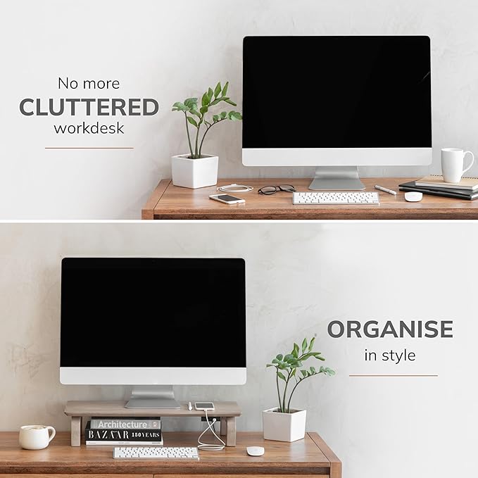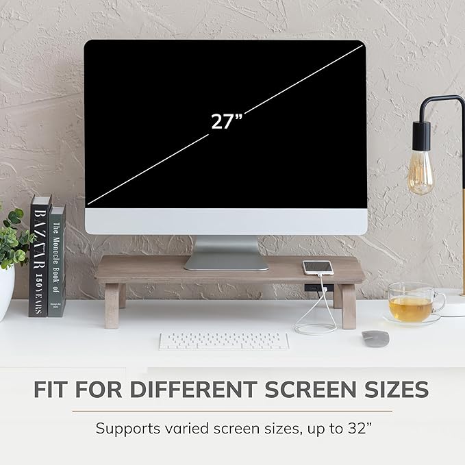 - Ergonomic Computer Riser: Prioritize comfort with this thoughtfully designed computer riser. As one of the best computer risers for desk monitors, the monitor stand wood construction offers an ideal viewing angle for maximum productivity.