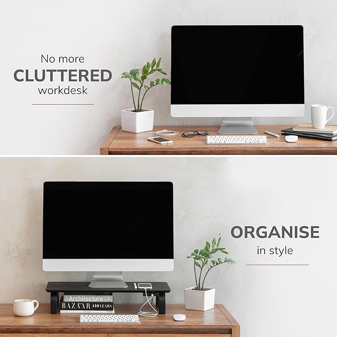 - Elegant Desk Shelf: Enhance your workspace with this sophisticated desk shelf, designed as a desk riser to elevate your monitor. The monitor stand riser ensures ergonomic comfort while adding a refined touch to any office.
