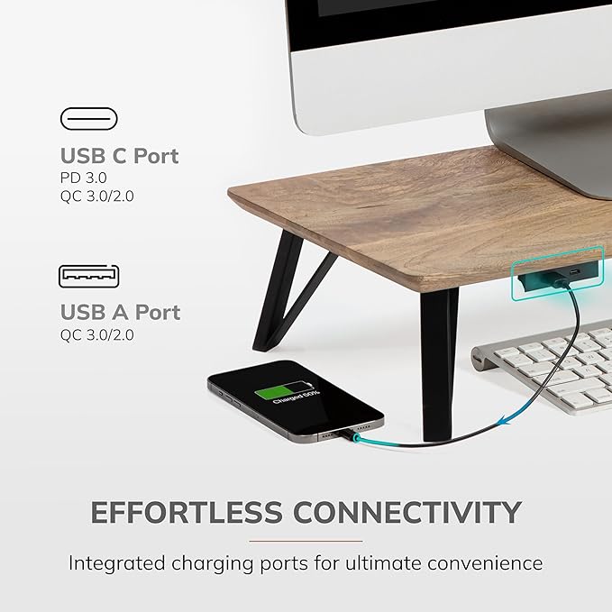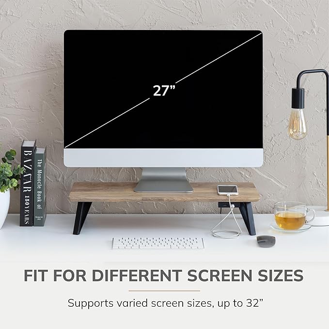 - Ergonomic Computer Riser: Prioritize comfort with this thoughtfully designed computer riser. As one of the best computer risers for desk monitors, the monitor stand wood construction offers an ideal viewing angle for maximum productivity.