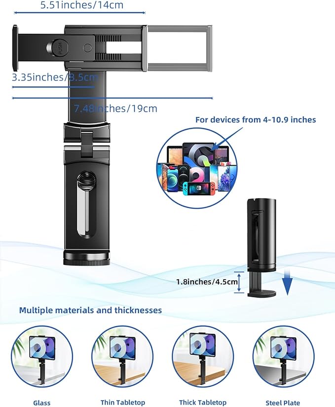 - ✈[Stable & Durable] --The unique ABS material and base anti-slip pad design makes the phone clip more stable, do not worry about dropping, and rubber protection pad to protect the tablet from damage.