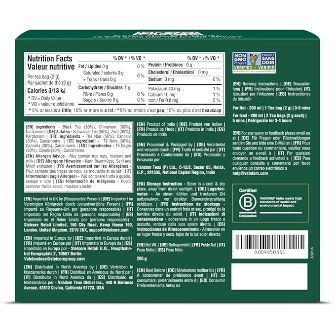 - 100% REAL INGREDIENTS - Each tea bag contains carefully mixed proportions of Assam CTC chai tea, fresh Cinnamon & crushed Cardamom. It has the natural sweetness of Cinnamon.