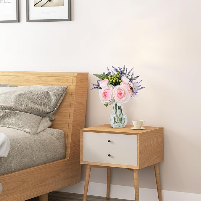 - Faux Flowers in Vase: Artificial flowers with vase include fake roses, artificial lavender plant, silk hydrangea flowers, berries and one glass vase. Perfect for coffee table decor, bathroom decor, kitchen decor, dining room decor, office decor, farmhouse decor