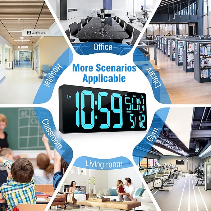 - 【Large Wall Clock & Desktop Clock】The led digital wall clock has a bracket for standing on a desk/shelf/nightstand, as well as 2 hanging hole at the back for easy wall mounting. It has 12 or 24 Hours display format and it can monitor and display the indoor temperature accurately in ℉/℃. Perfect for gym, living room,kitchen, office, classroom, warehouses and etc.