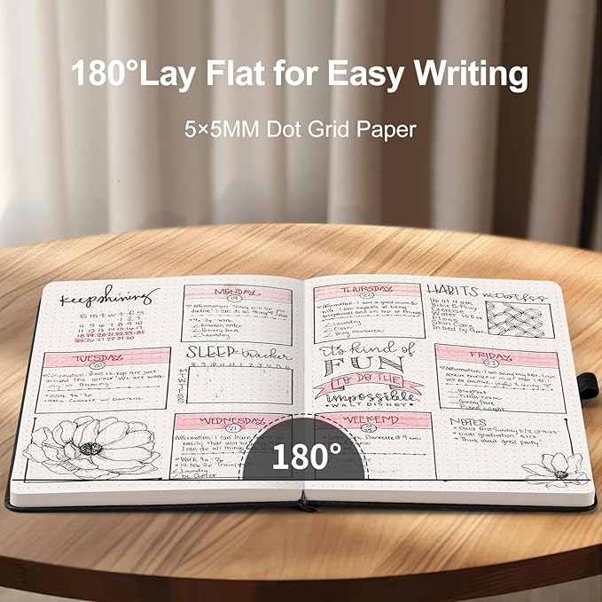 - LAY FLAT DESIGN FOR WRITING: The thread-bound design allows this notebook to 180° lay flat, ensuring easy writing and reading for both right and left-handed users without awkward hand positions. This provides an ideal ergonomic writing experience