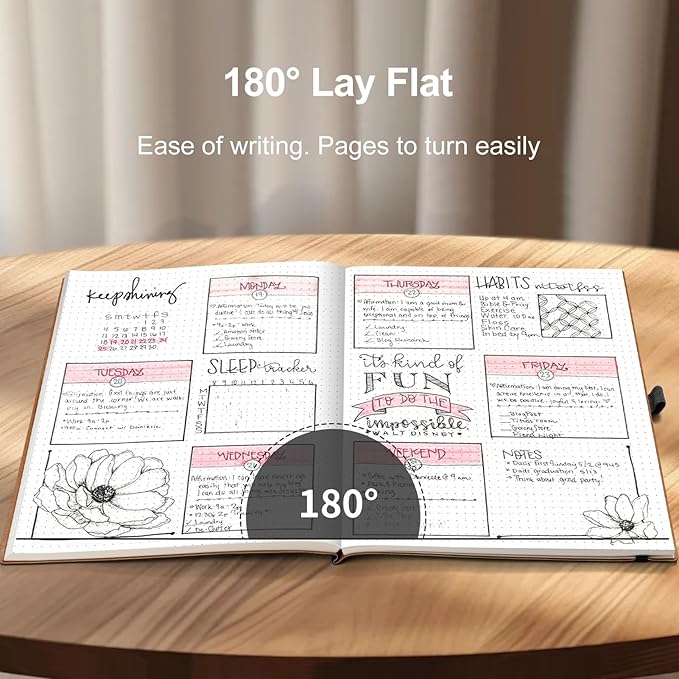 - LAY FLAT DESIGN FOR WRITING: The thread-bound design allows this notebook to 180° lay flat, ensuring easy writing and reading for both right and left-handed users without awkward hand positions. This provides an ideal ergonomic writing experience