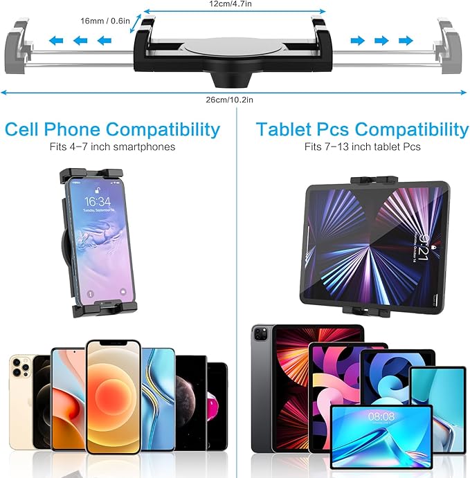 - 【Universal Compatibility】Long arm wall tablet cradle works with all 4-12.9 inch devices, with or without case including for the new 2022 / 2021 iPad Pro 11/ 12.9 inch, iPad 10.9, iPad Air 5, iPad Mini 6/ 5/ 4/ 3, iPad Pro 9.7/ 10.5, 2020 iPad Pro, iPad 5th/ 6th/ 7th/ 8th/ 9th/ 10th generation, accessories, Galaxy Tab, Switch, iPhone 15 14 13 12 Pro Max, and other smartphones.