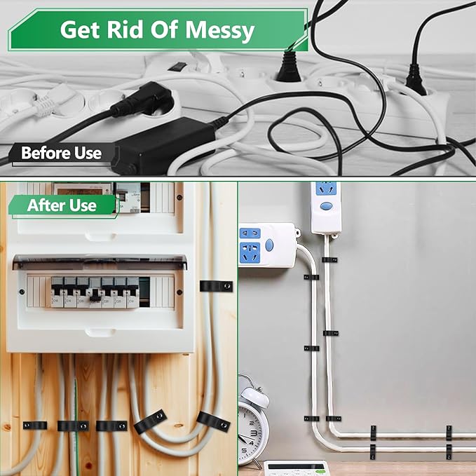 - 👨🔧【Easy to Organize】 – Only need to put the wire into the round hole, and tighten the wires with one screw. Fast and convenient. From then on, organizing your space becomes a piece of cake for you. Besides, they can be used repeatedly. Nylon cable clamp assortment is not easy to fall off, help you to avoid the trouble of messy wire, give you a safe and tidy home.