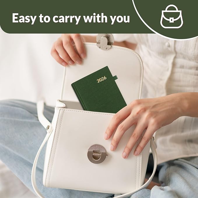 SUNEE 2026 Pocket Weekly Planner for Purse 3.5" x 6" - 12 Month (January 2026 - December 2026), Small Size Planner, Hardcover, Note, Deep Green