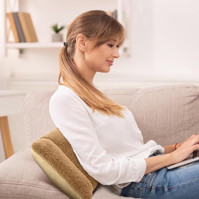 Queekay Fleece Lumbar Support Pillow 3 Section Back Pillow Office Chair for Back Support Comfortable Lumbar Cushion for Car Seat Pain Relief Sofa Rest(Light Tan)
