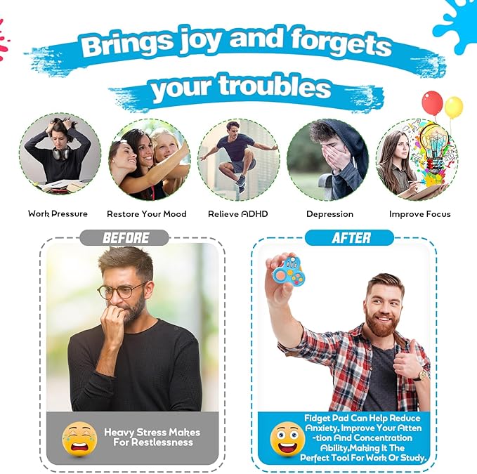 - Perfect gift for fidget lovers:If you're looking for a thoughtful and practical gift,our fidget pads are an excellent choice.Ideal for birthdays, easter gift for teen boys adults or any occasion,these fidget pads make for great sensory toys