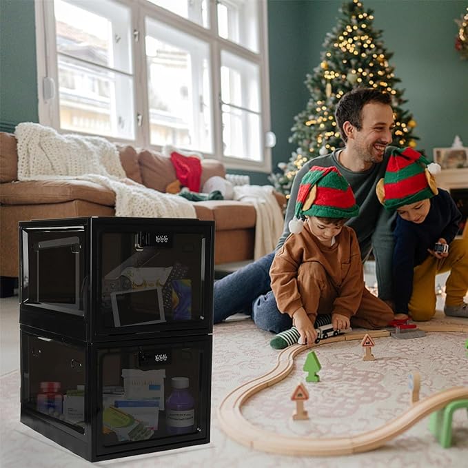 - The Safe Locking Storage Box Perfect for you to store medication, keep your kids pets away from danger.It can also be used as a storage box for mobile phones, snacks and sweets to keep you focused while you work.Wide application range,you can place the box in your home, kitchen, refrigerator, office, school and so on