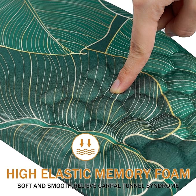 Ergonomic Mouse Pad Wrist Support,Upgrade Mousepad with Massage Design,Non-Slip PU Base Desktop Mouse Pads for Pain Relief, Computer, Office & Home,12 x 8 in(F-Leaf Green)