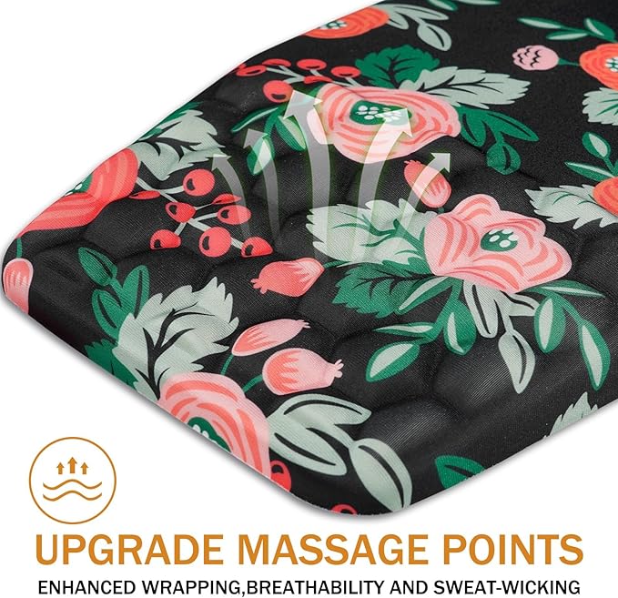 Ergonomic Mouse Pad Wrist Support,Upgrade Mousepad with Massage Design,Non-Slip PU Base Desktop Mouse Pads for Pain Relief, Computer, Office & Home,12 x 8 in(F-Flower Black)