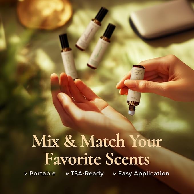 - Portable & Easy Aromatherapy: These compact essential oil rollers fit easily into bags or pockets, ideal for on-the-go application. Simply roll onto pulse points, neck, or temples and massage for a refreshing, calming experience anytime, anywhere.