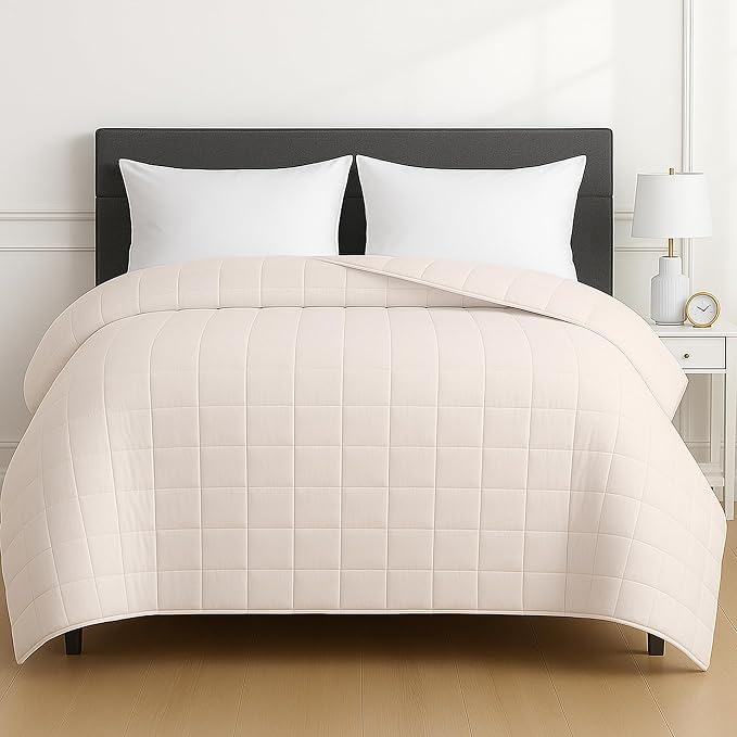 HomeSmart Products 50lbs Weighted Blanket Queen Size - Breathable Soft Fabric, Extra Heavy Weighted Blanket (Light Khaki), 92"x88"