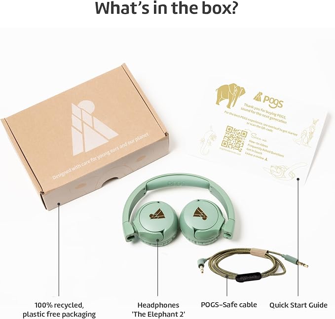 - DETACHABLE CABLES: extend the lifetime of your POGS by replacing the audio cable if needed. The optional POGLink cable enables music sharing with other POGS The Elephant headphones.