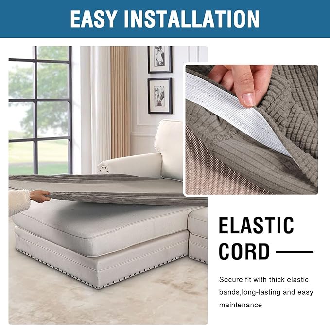 - NON SLIP: Effortless for installation (guide photos on selling page), sewn with thick elastic loops to cover the bottom edges. It is easy to install and take off, making your home more harmony, high recommended for both leather and cloth furniture