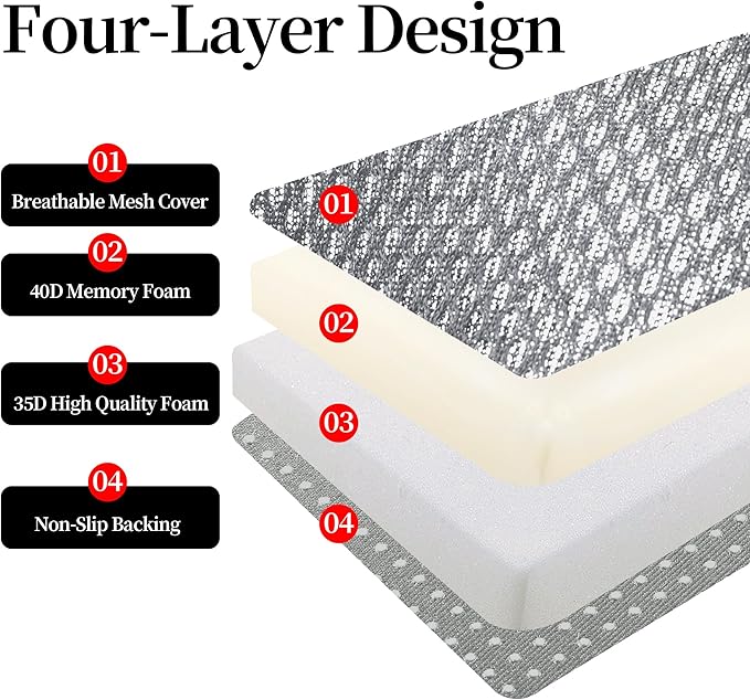 - Memory Foam + Sponge Filling: The upper layer of the thick cushion is filled with memory foam, and the lower layer is filled with sponge, which ensures better support while playing a good comfortable role. The 6 inch Thick cushion it perfect for use as a booster seat for adult, which reduce the strain on your lower back, hips, and legs,ensuring that you stay comfortable even during long hours on the work.