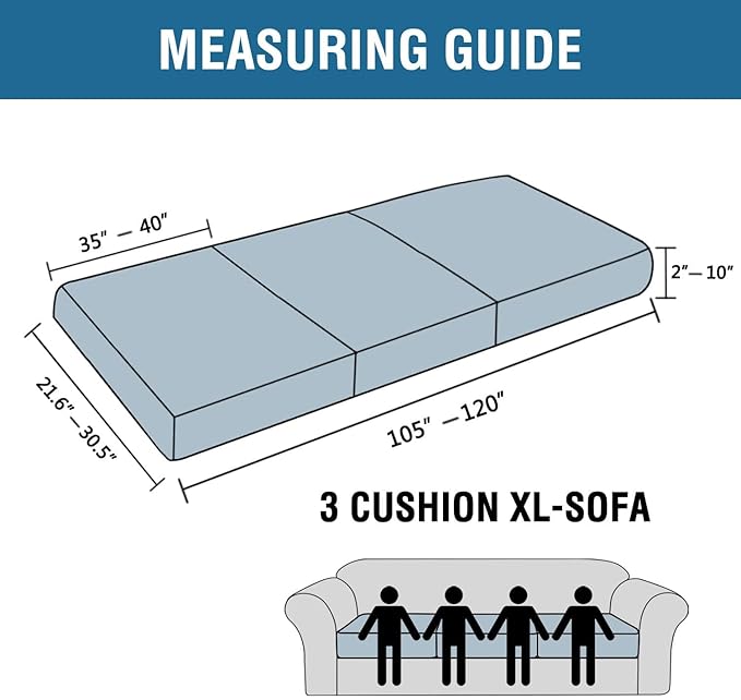 - GREAT FIT: Slipcover Set of 3. This innovated cushion slipcover is crafted from durable and soft high stretch knitted jacquard fabric. Sofa Seat Cover(fit total sitting area between 105-120 inches). Feature one-size-fits-most, kindly measure before ordering. Suitable for both T cushion and Box cushion styles