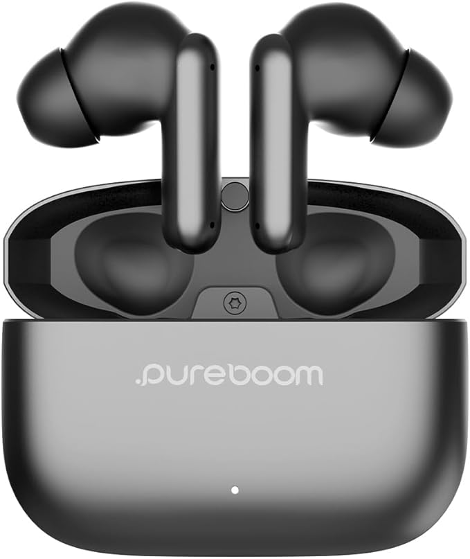 PureGear PureBoom Orbs Pro Active Nosie Cancellation Wireless Earbuds, Reduce Noise with ANC, Stereo Headphones in Ear with Zinc Alloy Case for iPhone/Android Phones/TV/Laptops, More Devices(Gunmetal)