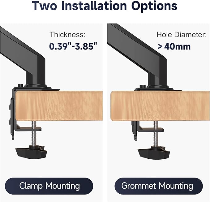 - Two install options: C-clamp and optional grommet base save your valuable desk space.Step-by-step user manual and organized hardware kit for hassle free mounting.If you have any problems during the installation process or product selection,you can contact our customer service team in a timely manner.