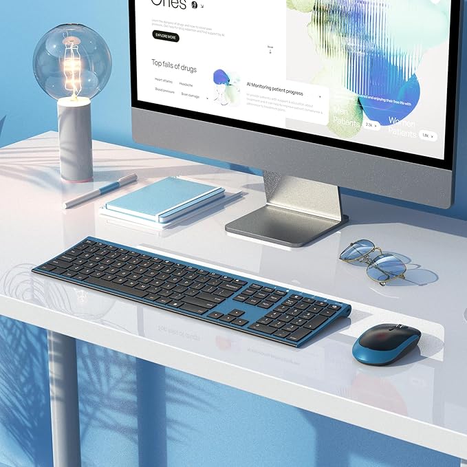 Wireless Keyboard and Mouse, Vssoplor 2.4GHz Rechargeable Quiet Full-Size Keyboard and Mouse Combo with Nano USB Receiver for Windows, Laptop, PC, Notebook-Black and Blue