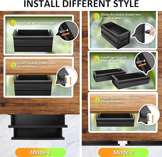 - Premium Material: Under desk drawer is made of premium cold steel ,high strength, good stability, strong anti-oxidation ability, ensure durability and long life. the surface matte black powder coating, which prevents scratching surface, easy to clean