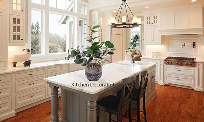 - 【VERSATILE GREENERY SOLUTION】Bring a cozy, inviting atmosphere to your living space with this maintenance-free, lifelike ficus plant. Whether you've had trouble keeping live plants alive or you're searching for an effortless way to add greenery, this faux ficus plant delivers a warm, homey vibe without the hassle of watering or sunlight.