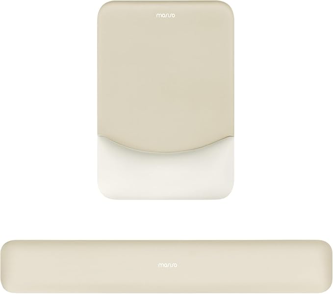 MOSISO Wrist Rest Support for Mouse Pad&Keyboard Set, Rectangular Ergonomic Mousepad Non-Slip Base Home/Office Pain Relief&Easy Typing Pad with Neoprene Cloth&Raised Curved Memory Foam, Khaki