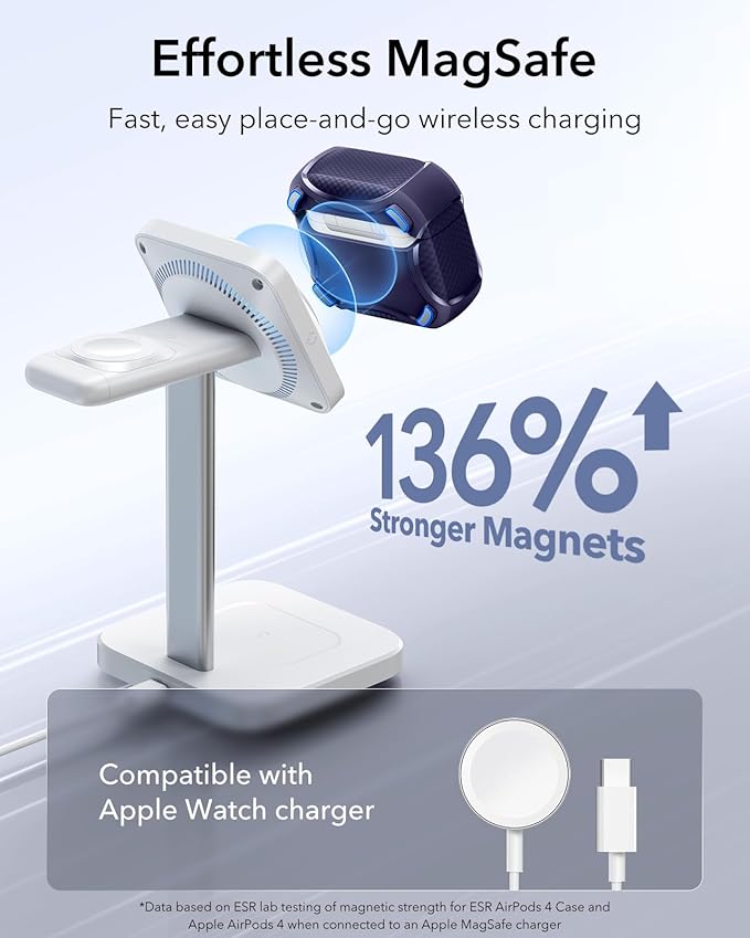 - MagSafe Ready: strong magnets in the back of the case ensure a secure lock on MagSafe chargers, letting you enjoy tap-and-go wireless charging for your earbuds; wireless charging is only for Airpods 4 with Active Noise Cancellation