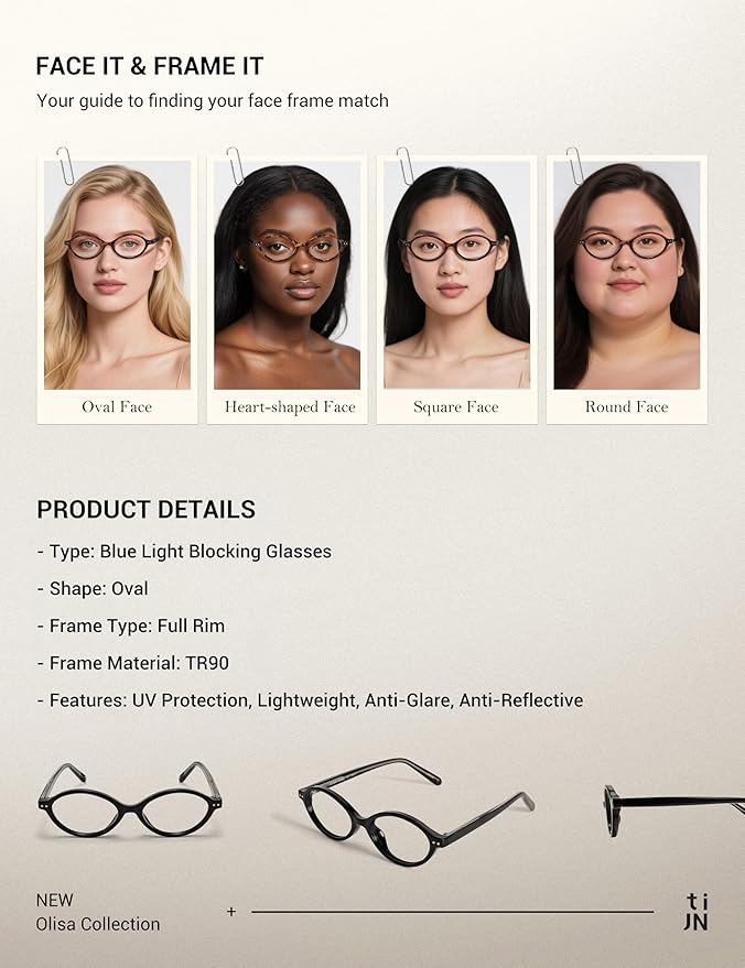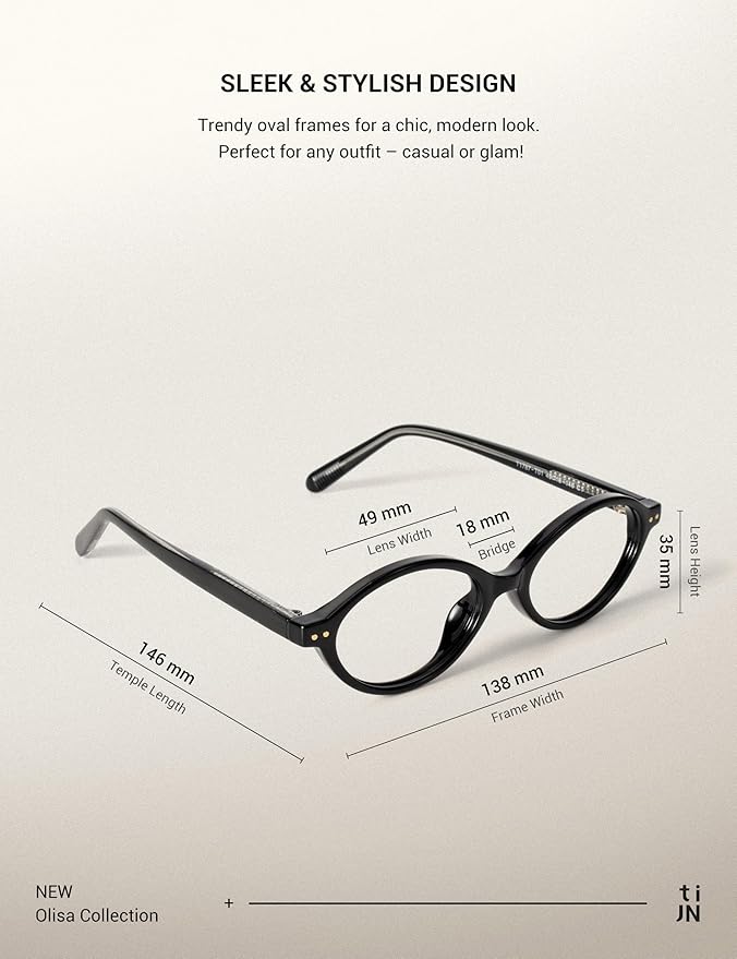 TIJN Olisa Blue Light Blocking Glasses for Women Men,Oval Glasses Frame Bluelight Glasses for Gaming/Computer/Screen