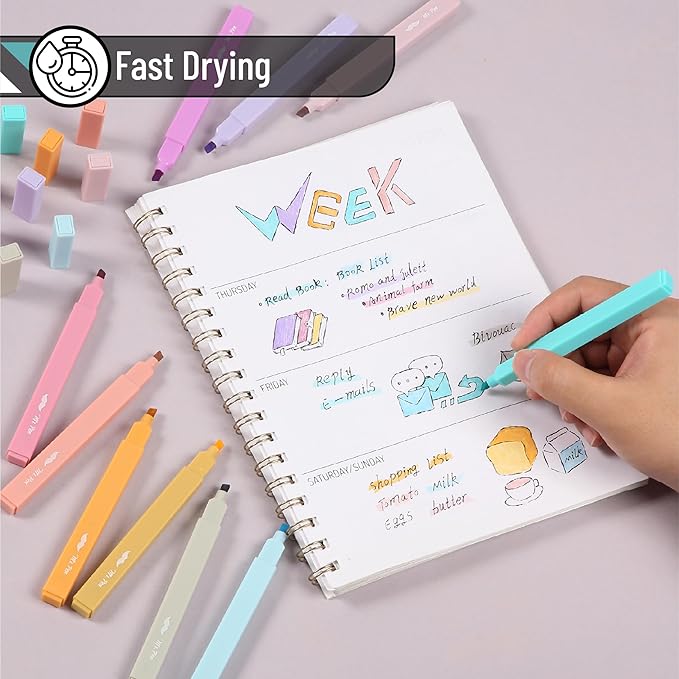 - Great for school, work, or journaling, these pastel-toned highlighters combine functionality with a stylish aesthetic.